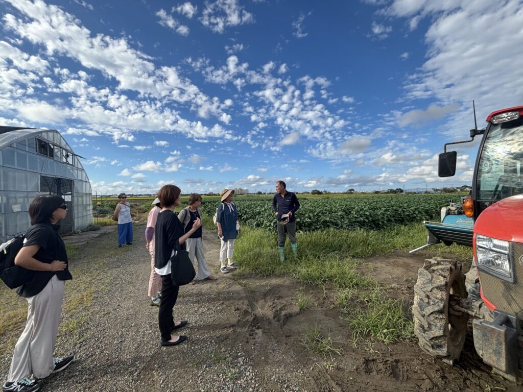 第3回となる今回は、JA新潟かがやき 黒埼園芸センターの桜井健一センター長から、新潟の夏の風物詩である「くろさき茶豆」についてお話を伺いました。試食会では、「ぴかり茶豆」を試食。その後は、農場に向かい枝豆畑見学、枝豆作業場で機械設備、農産物直売所を見学し、青木農場の青木弘社長より農家の現状を聞くことができました。